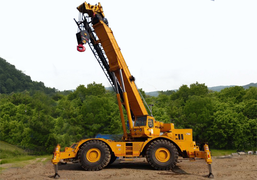 All terrain cranes are essentially a hybrid between a mobile truck crane and a rough terrain crane.